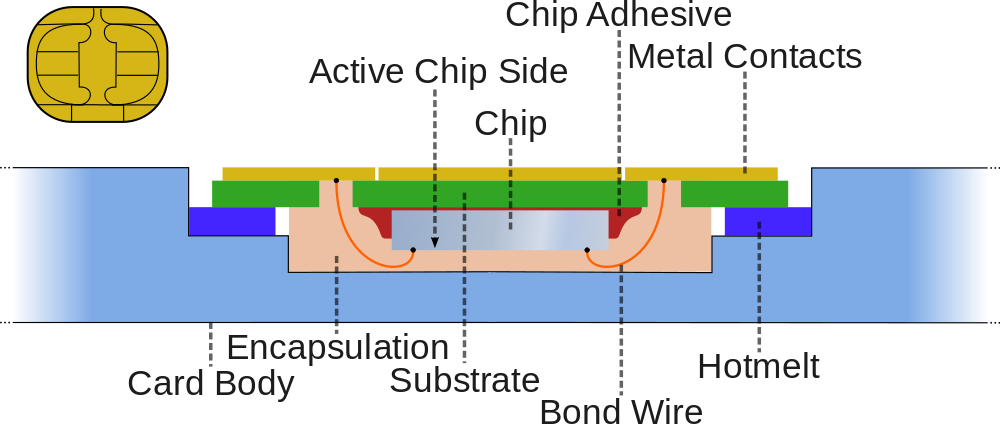 SIM kartlar aslında mini bilgisayarlar olarak inşaa edilirler. Birçok insan katkat birbiri içerisine geçmiş hafıza bölümlerinden oluştuğunu düşünür. Ancak bir SIM kart içerisinde hafıza, işlemci hatta işletim sistemi bulunmaktadır. Çip bu altın kaplama yapıların altında bulunmaktadır. Yapının nasıl işlendiğini aşağıdaki diyagramdan görebilirsiniz.