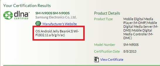 Galaxy Note III’ün Android 4.3 ile piyasaya sürüleceğinin sinyalleri verilmişti. Ortaya çıkan yeni bir bilgiye göre Samsung, yeni tablet-telefonu için DLNA sertifikasını çoktan aldı.
