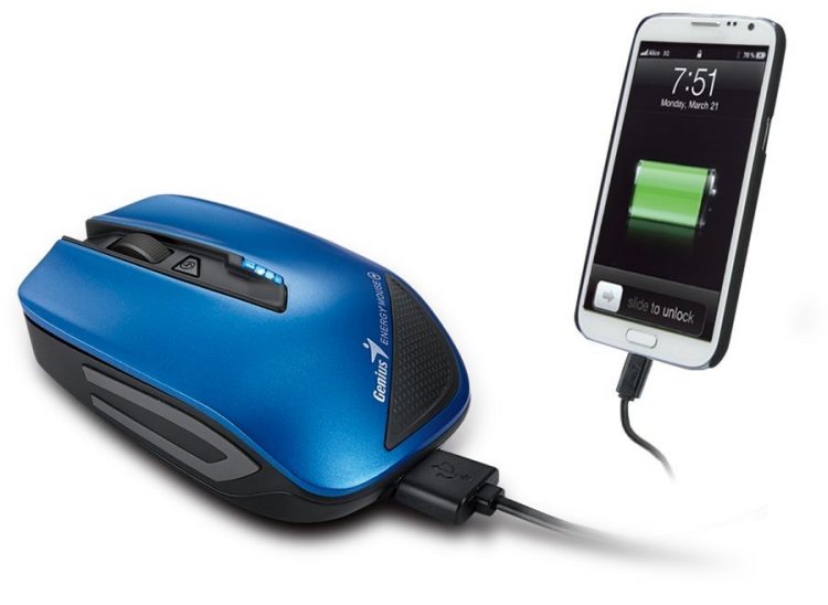 Energy Mouse“Enerji Fare” ismiyle lanse edilen Genius’un yeni geliştirdiği ürünü ile akıllı telefon ya da tabletleri şarj etmek mümkün. Piko alıcılı, 1200dpi kablosuz bilgisayar faresi, içerisinde 2700mAh yüksek kapasiteli pil barındırıyor. Li-polymer pilin şarj durumu da 4 adet led ışık üzerinden takip edilebilmekte.