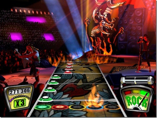Guitar Hero’nun bu kadar patlamasının sebebi, oyunla birlikte satın alınan oyuncak gitar olsa gerek. Ekrandaki mavi, kırmızı, yeşil ve diğer renk cümbüşü içerisindeki butonlara zamanında basarak bir rock yıldızı olabiliyordunuz. Yıllar içerisinde çıkacak diğer oyunlarıyla da kendinden sıklıkla söz ettirecek Guitar Hero, şu aralar emekliliğini yaşıyor.