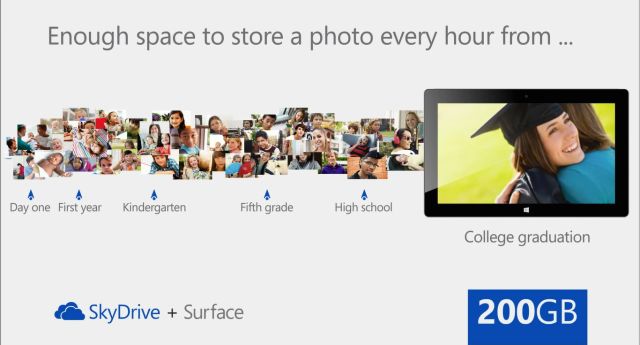 Microsoft’un yeni tabletlerini alan kullanıcılara 2 yıllık ücretsiz 200 GB’lık SkyDrive alanı verileceği açıklandı. Tableti satın almayan kullanıcılar yıllık 100 Dolar karşılığında bu alana sahip olabilecek.