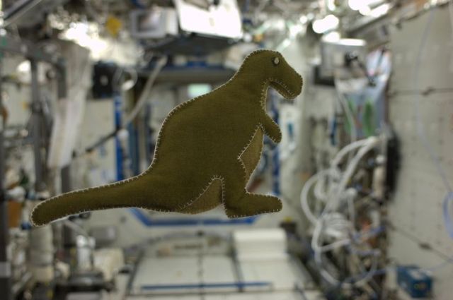 Dünya yörüngesinde bulunan Uluslararası Uzay İstasyonu’nda şu an Expedition 37 mürettebatı bulunuyor. Expedition 37 astronotlarından 43 yaşındaki Karen Nyberg, istasyon içerisindeki artık parçalarla oyuncak bir dinazor dikti. Pinterest sayfasında Made in Space – Uzay’da Üretildi başlığıyla paylaştığı görüntüde, yerçekimsiz ortamda süzülen oyuncak görülebiliyor.