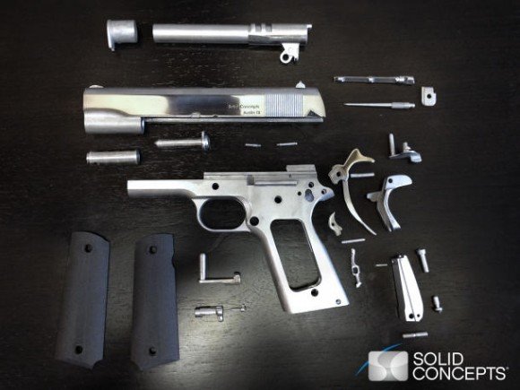 Öte yandan, Amerika’nın Teksas eyaletinde faaliyet gösteren Solid Concepts firması, işi bir adım ileriye götürdü ve 3D yazıcıda silah üretme konusunda çok ciddi bir gelişme gösterdi. Solid Concepts mühendisleri, Colt M-1911 modelini temel alan bir tabancanın tüm parçalarını metalden basabildiklerini açıkladılar. Burada kullanılan teknik “lazer sinterleme” olarak biliniyor ve plastik kullanan yazıcılarla temelde aynı prensipleri kullanıyor. Yüksek güçlü bir lazer ışığı, toz halinde baskı malzemesinden ısıyla eriterek istenen şekli çıkarıyor.