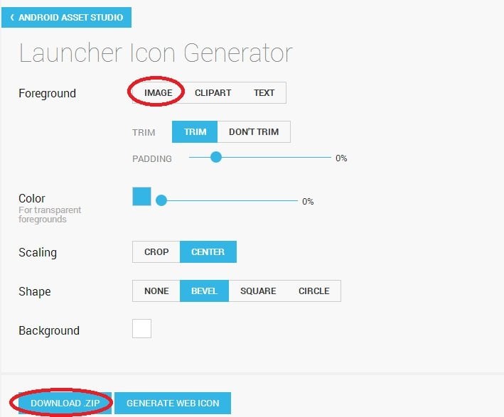 Butonların görüntüsünü değiştirmek için yukarıdaki verdiğim resimleri kullanacağız. Resimleri drawable klasörlere kopyalacağız. Butonların farklı ekranlarda aynı görünmesi için yukarıdaki verdiğim resimlerin boyutlarını değiştireceğiz. Bunu yapmak için Android Asset Studio Launcher Icons’ı kullanacağız.