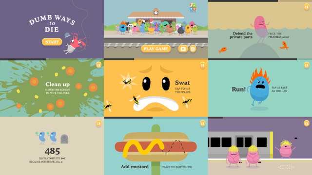 Mayıs 2013 tarihinde yayınlanmasına karşın, Dumb Ways to Die bundan biraz daha eski. YouTube’da yayınlanan videoda, garip şekilli yaratıklar, enteresan şekillerde başlarına bela açıp ölüyorlardı. Bu videonun olumlu yorumlar almasının ardından bir de oyununu çıkardılar. Dumb Ways to Die içerisinde 15 farklı mini oyun var. Kullanıcı bu mini oyunlar içerisindeki yaratıkların zarar görmeden bölümü bitirmesine yardımcı oluyor.