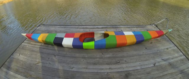 Sadece 3D yazıcı kullanılarak oluşturulan rengarenk kayık 42 gün içerisinde sadece 500 Dolar’lık bir masrafla elde edildi. 28 farklı parça olarak çıkarılan gökkuşağı kayığı, silikon ve vidalarla birleştirildi.
