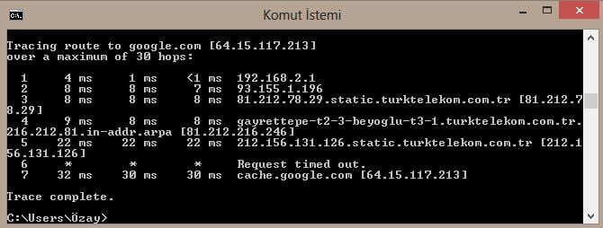 Çok basit bir yöntemle bunun olmadığını anlayabiliriz. Komut İstemi üzerinden tracert yazarak, Twitter, Facebook ve Google ana sayfalarına ilişkin bilgileri ortaya çıkardım. Aşağıda görselleri görebilirsiniz: