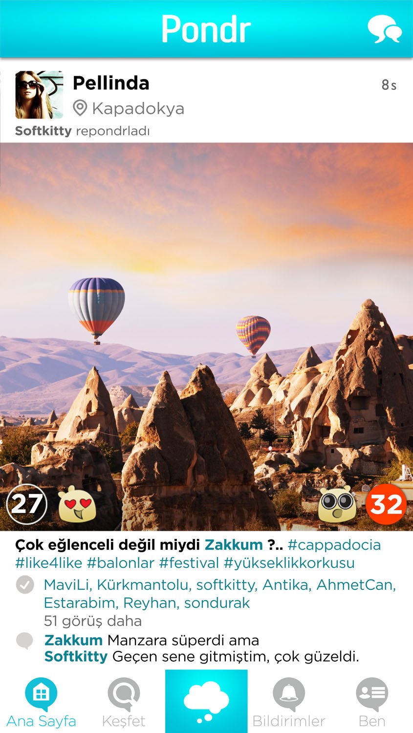 Kullanıcıların çektikleri fotoğraflar üzerinden arkadaşlarının görüşlerini hızla alabilmelerini ve kolayca yeni diyaloglar başlatmalarını sağlayan sosyalleşme uygulaması Pondr, 11 Nisan Cuma günü İstanbul Ceylan Intercontinental Otel’de yapılan etkinlikte tanıtıldı.