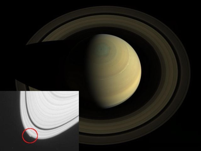 NASA’nın Cassini sondasının çektiği görüntüler, Satürn’ün halkaları arasına saklanmış yeni bir gök cismini ortaya çıkardı.