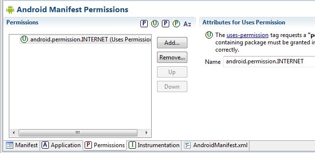 <?xml version="1.0" encoding="utf-8"?> <manifest xmlns:android="http://schemas.android.com/apk/res/android" package="tr.example.simplebrowser" android:versionCode="1" android:versionName="1.0" > <uses-sdk android:minSdkVersion="8" android:targetSdkVersion="18" /> <application android:allowBackup="true" android:icon="@drawable/ic_launcher" android:label="@string/app_name" android:theme="@style/AppTheme" > <activity android:name="tr.example.simplebrowser.MainActivity" android:label="@string/app_name" > <intent-filter> <action android:name="android.intent.action.MAIN" /> <category android:name="android.intent.category.LAUNCHER" /> </intent-filter> </activity> </application> </manifest>