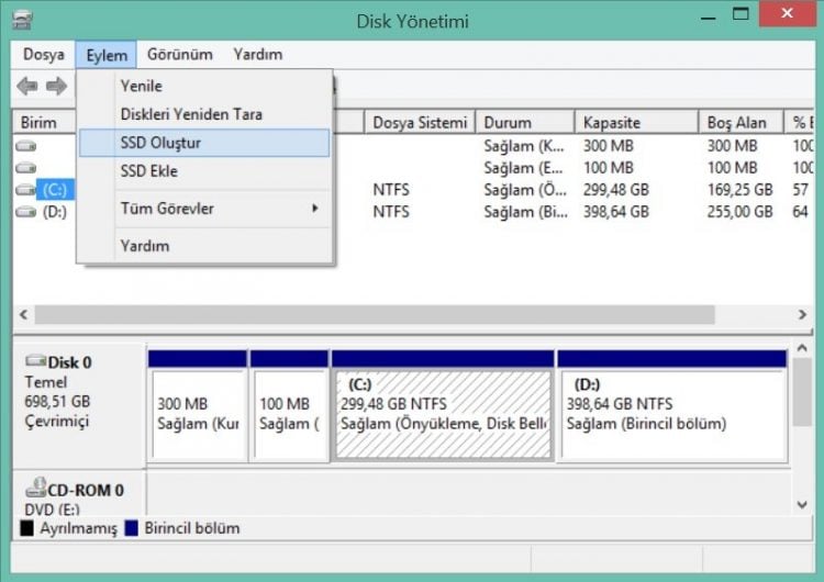 SSD’yi ayırmak için disk listesinde oluşturduğunuz birime sağ tıklayıp SSD’yi Ayır seçeneğine tıklayın. Karşınıza çıkan pencerede Tamam seçeneğine tıklayıp diski ayırabilirsiniz.