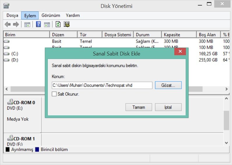 Önemli verilerinizi yedeklemek için Windows’un Sanal Sabit Disk özelliğini kullanabilirsiniz.