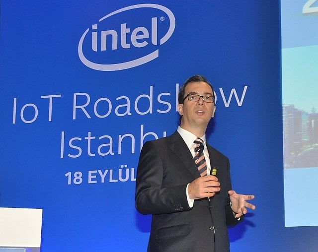 Intel Türkiye Genel Müdürü Burak Aydın, açılış konuşmasında “Dördüncü endüstri devrimi” olarak nitelendirdikleri Nesnelerin İnterneti devriminin, önümüzdeki 10 yıla damgasını vuracağını ve günlük hayatın yanında tüm sektörlerin iş yapış şekillerini değiştireceğini söyledi. 2013’te 8.7 milyar olan akıllı cihaz sayısının, 2020’de 50 milyara çıkacağını söyleyen Aydın, otomobillerden ev eşyalarına, kişisel araçlardan evcil hayvanlara kadar, bir fayda sağlayacak her şeyin bağlanacağını, önümüzdeki 20 yılda şehirlerin akıllı şehirlere dönüşmesi için 41 trilyon dolar harcanacağını belirtti.