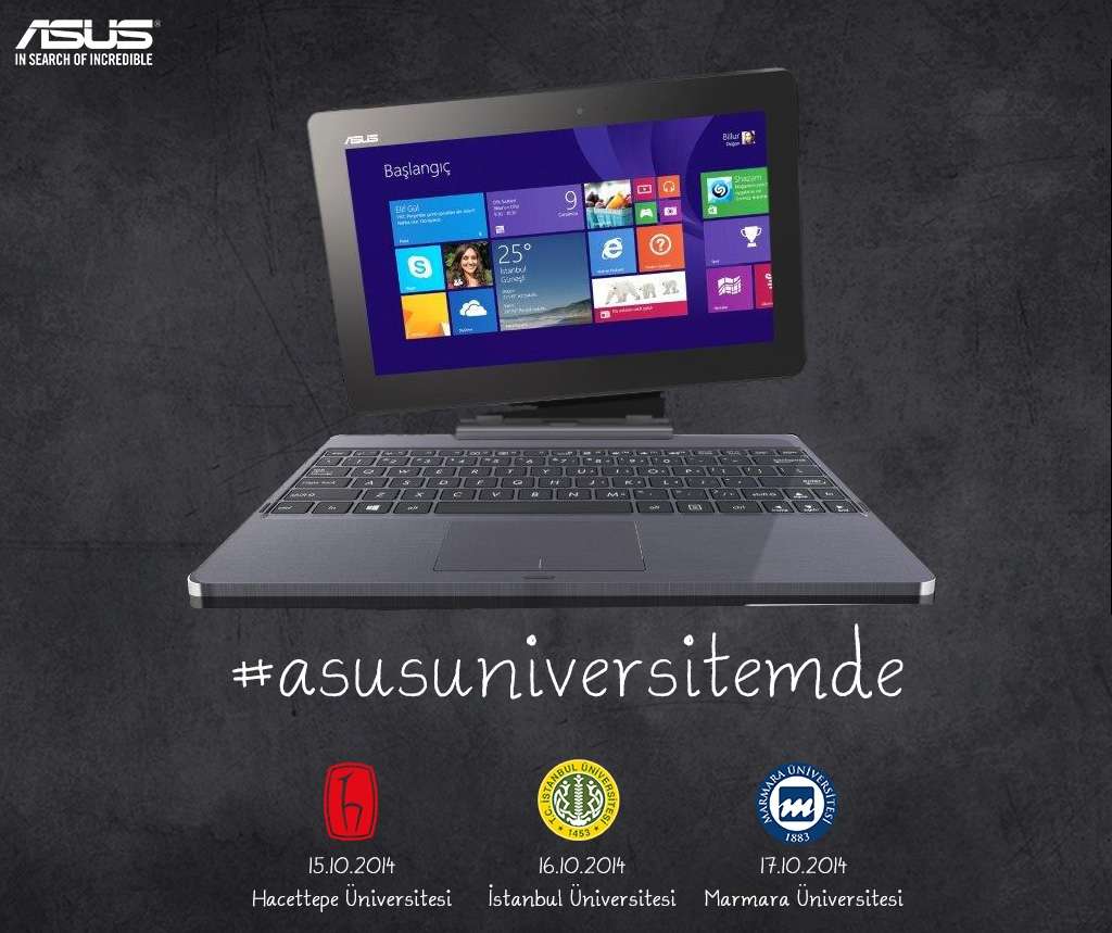 ASUS “We Transform” ürünlerinden ASUS Transformer Book T100, Hacettepe Üniversitesi, İstanbul Üniversitesi ve Marmara Üniversitesi öğrencileriyle buluşuyor! Üniversitelerdeki ASUS stantlarında öğrencileri süpriz hediyeler bekliyor.