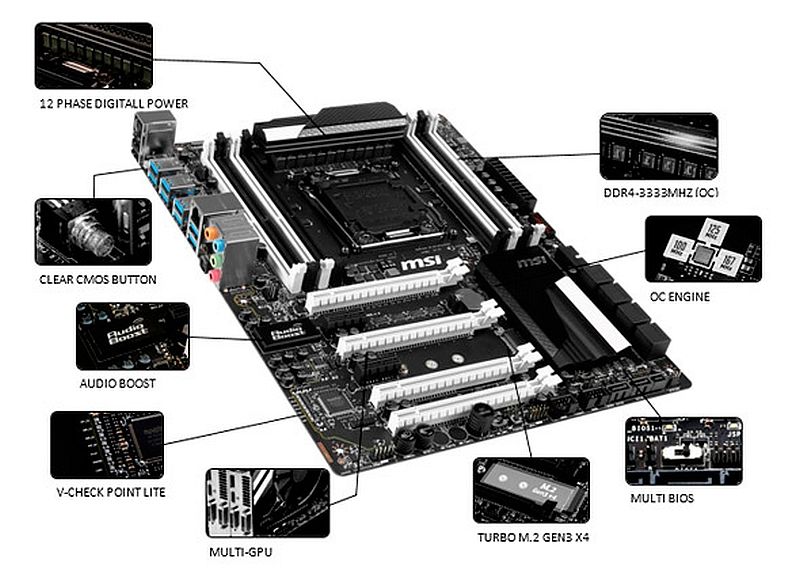 Yeni MSI X99S SLI Krait Edition yalnızca siyah-beyaz şık görünümlü bir anakart değil; aynı zamanda birçok yeni özellik ve geliştirmeyi de içinde barındırıyor. Intel’in güvenilir ve hızlı Gigabit LAN bileşeninin yanında Nvidia SLI ve AMD CrossFire desteği ile çoklu ekran kartı kullanma imkanı sunarken kulaklarınızı ödüllendirecek Audio Boost teknolojisi ve ses geliştirici özellikleri de bir arada sunuyor. 32Gb/sn’ye kadar ulaşan tümleşik Turbo M.2 sayesinde kullanıcılar oyunların yıldırım hızında yüklendiğine, sistemin ise son derece hızlı açıldığına şahit olacaklar. SATA Express portu da unutulmamış. Guard-Pro ve Military Class 4 ise özenle seçilip test edilen bileşenler sayesinde ihtiyacınız olan kararlılığı sunuyor.