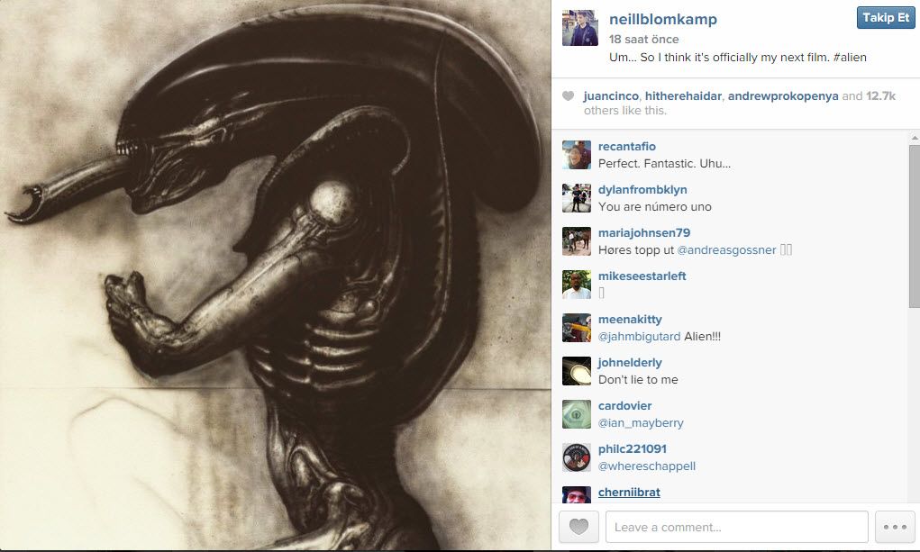 Blomkamp Instagram üzerinde bir Alien çizimi paylaştı. Sıradaki büyük projesinin Alien filmi olduğunu söyleyen Blomkamp bakalım serinin haklarını elinde tutan Fox tarafından da doğrulanacak mı. Instagram hesabını burada bulabilirsiniz…