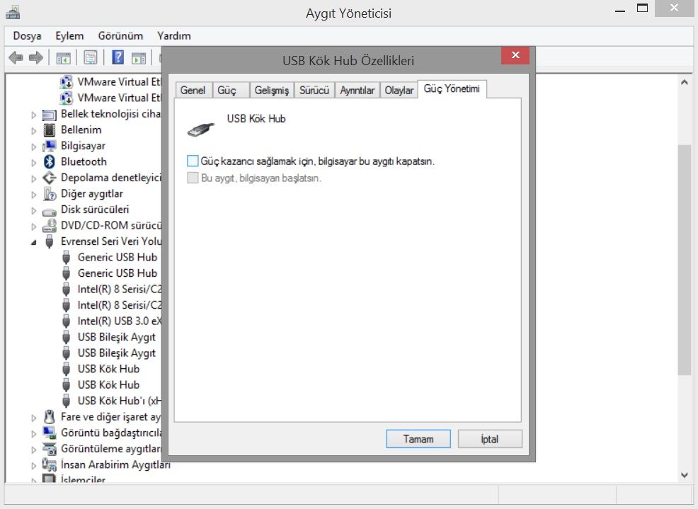 USB Portlarında Güç Tasarrufunu Kapatın