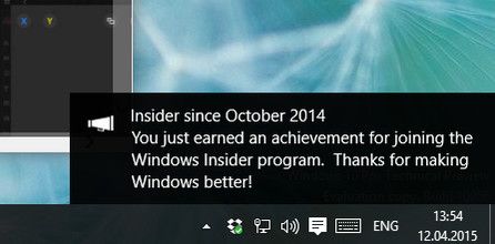 Pek çoğumuzun Xbox ile hayatına giren başarımlar, Windows 10’un en güncel sürümünde karşımıza çıktı. Eğer Windows 10’un 10056 sürümüne sahipseniz, Insider Hub’ı açtığınızda görseldeki gibi bir başarımla karşılaşabilirsiniz.