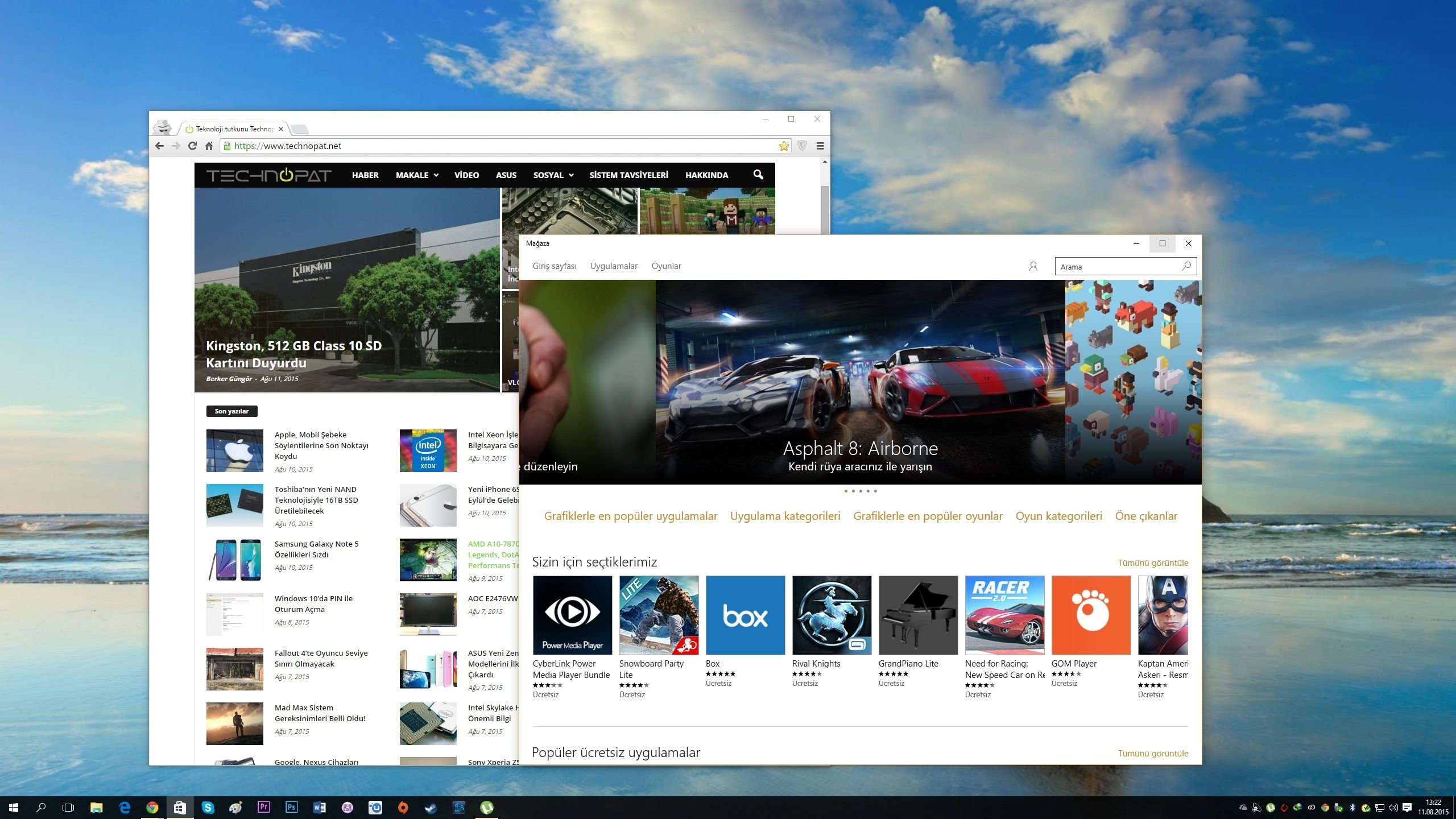 Yukarıda Windows uygulamalarının pek kullanılmadığından bahsetmiştik. İşlevsizlik bunun en önemli sebeplerinden biriydi. Microsoft, en önemli işlev sıkıntılarından biri olan tam ekran uygulama sisteminden vazgeçmiş gibi görünüyor. Windows 8’de pencere boyutuna düşürülemeyen Windows uygulamaları, Windows 10 ile birlikte artık standart masaüstü uygulamaları gibi pencere modunda çalışabiliyor.