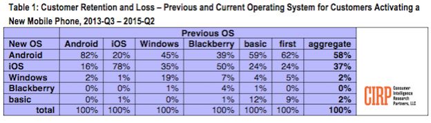 Tüketici İstihbarat Araştırma Şirketinin (CIRP) son iki yıl içinde akıllı telefon satışlarından gözlemlediği ve derlediği kadarıyla, Android işletim sistemli bir telefon kullanan kullanıcıların %82’si yine Android’i tercih ediyor. iOS kullanıcılarının iOS’a sadık kalma oranıysa %78.