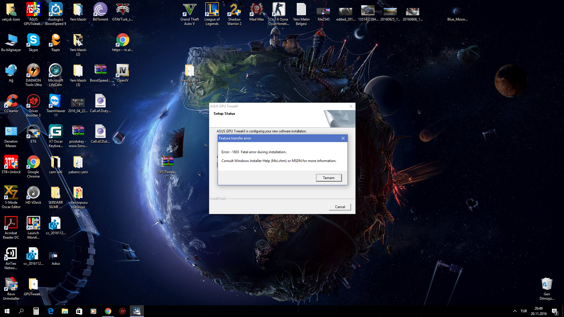 Recep abi GPU Tweak 2 yi kurarken ”Do you want to completely remove the selected application adn all of its features ?” diyor Tamam diyorum ondan sonrada ”Error 1316.Belirtilen hesap zaten var.” diyor onada tamam dedikten sonra ” Consult windows installer help (msi.chm) or MSDN for more information” hatası alıyorum ve setup kendiliğinden kapanıyor yardım edersen çok sevinirim…