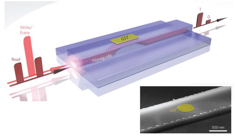 Araştırmacılar “dalga kılavuzu” adlı bir teknoloji kullanarak ışığın silikon-nitrür malzemesinden doğruca geçebilmesini sağlayan bir yonga ürettiler. Nano ölçekte GST materyali ile kaplanan bu yongaya yüksek güçlü lazer tutuldu ve lazerin GST malzemeyi bir saniyeden kısa bir sürede eritip yeniden eski haline getirebildiği gözlemlendi. Yani çok hızlı bir şekilde ve kalıcı olarak veri yazmak ve okumak mümkün olabiliyor.