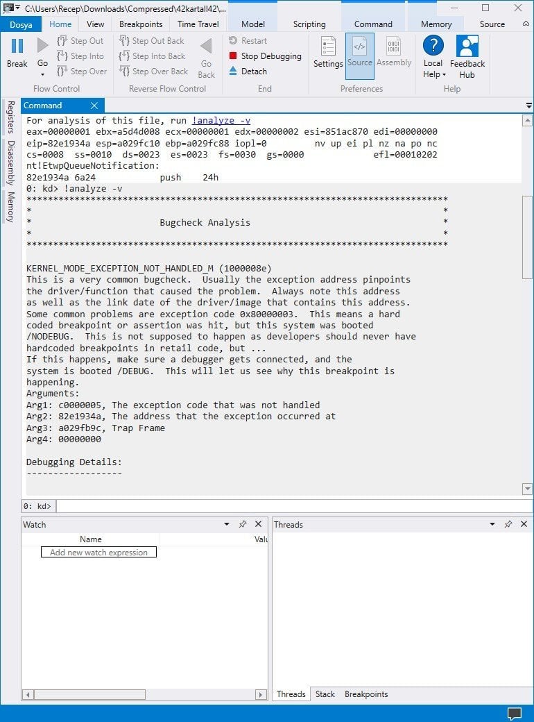 Döküm açıldıktan sonra !analyze -v ayıklama komutu ile hata kodunu bulabilir ve sorunu detaylıca inceleyebilirsiniz. Eğer sorunu tespit etmekte zorlanırsanız, hata dökümü analizi ile Technopat Sosyal‘de konu açıp tecrübeli üyelerimizden yardım isteyebilirsiniz.