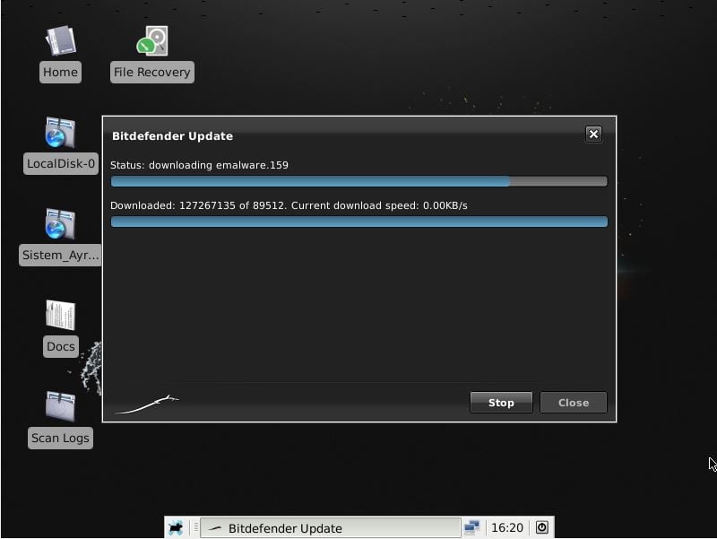 BitDefender Rescue Disk’i USB bellekten çalıştırın ve sisteminizi virüslere karşı tarayın.