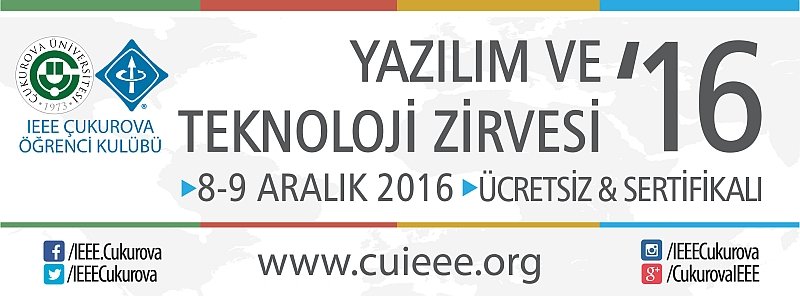 IEEE ÇUKUROVA Öğrenci Kulübü olarak iki yıldır düzenlenen Yazılım ve Teknoloji Zirvesi, 8-9 Aralık 2016 tarihlerinde Mithat Özsan Amfisi’nde gerçekleşecek.