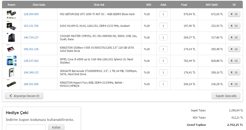2300 TL ile GTX 1050ti sistem toplarım. Burdaki sistemler çok kötü