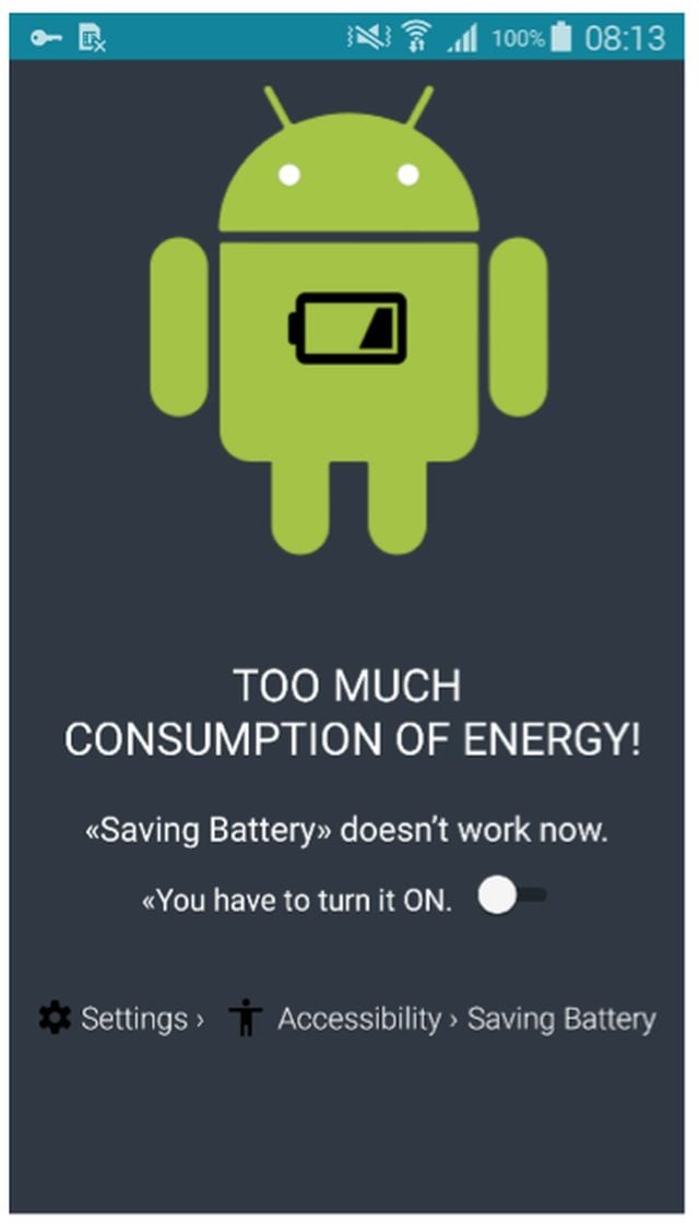 Kullanıcının bu güncellemeyi yüklemesi ile birlikte bu kötü amaçlı yazılım, Android sisteminde sahte bir ‘Pil Tasarrufu’ hizmeti oluşturuyor ve kurbandan Android’in erişilebilirlik işlevleri içinde önemli izinler vermesini talep ediyor. Bunların arasında ‘eylemlerinizi izleme’, ‘pencere içeriğini alma’ ve ‘dokunarak göz atmayı açma’ gibi izinler olabiliyor. Bu izinler siber saldırganın, telefon sahibinin eylemlerini taklit etmesini ve kullanıcının ekranında istediklerini gösterebilmesini sağlıyor.