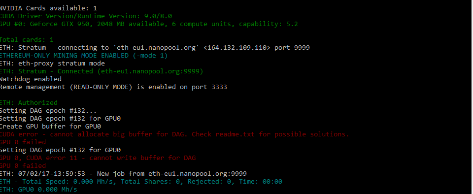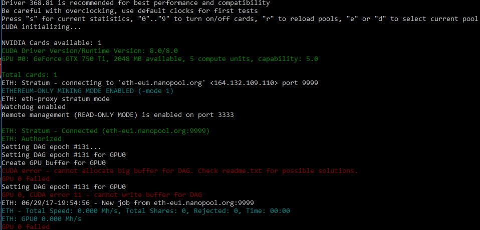 cuda Error 11 can not write buffer for dag hatası alıyorum GTX 750 ti 2 gb mevcut neden maden e başlayamıyorum acaba ??