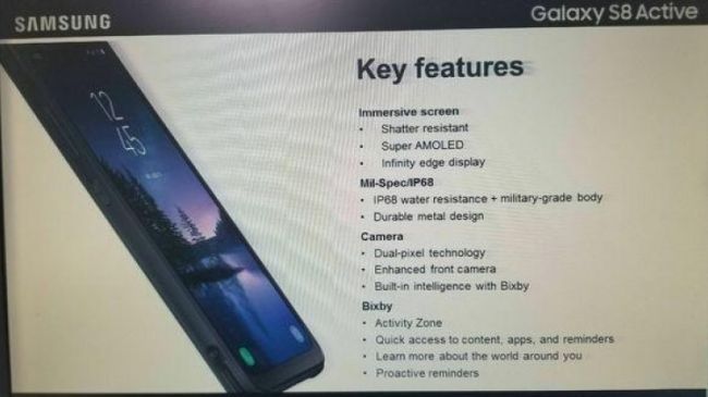Samsung genelde S serisinin her üyesi için bir Active sürümü çıkarıyor. Şimdi de sıra Galaxy S8 Active’de. Telefonun bu sürümüne dair özellikler ve görüntüler sızmış durumda. MIL-STD-810G US askeri dayanıklılık standartlarına göre Galaxy S8 Active’in asıl Galaxy S8’e göre daha yüksek pil kapasitesi sunacağı da söylenenler arasında.