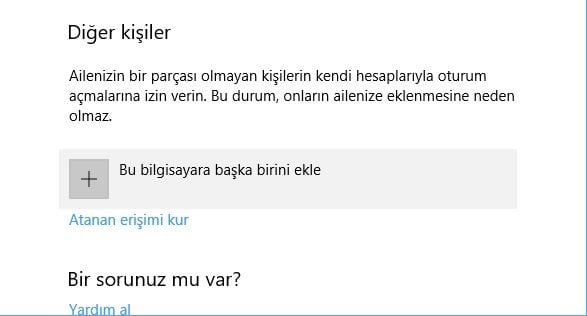 Diğer kişiler altında bulunan Bu bilgisayara başka birini ekle seçeneğine tıkladığınızda şöyle bir pencere açılacaktır: