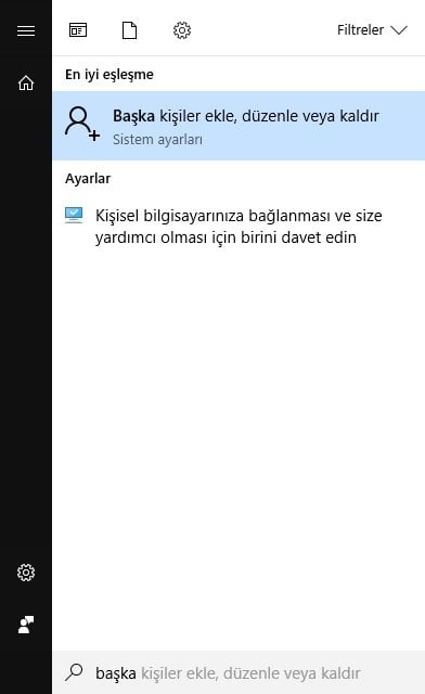 Bunu yapabilmek için öncelikle Başlat menüsünü açıp oraya “başka” yazmanız gerekiyor. Karşınıza şöyle bir ekran gelecektir.