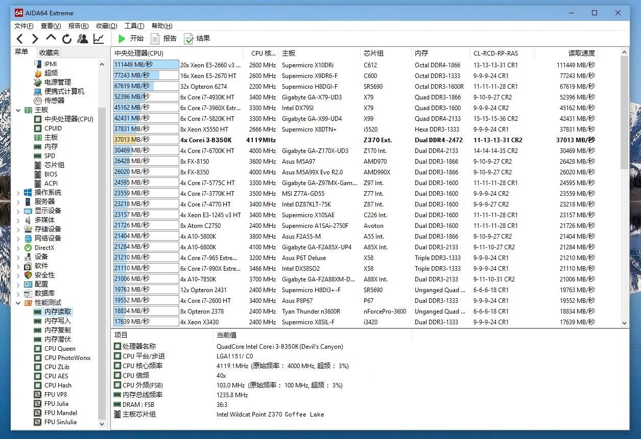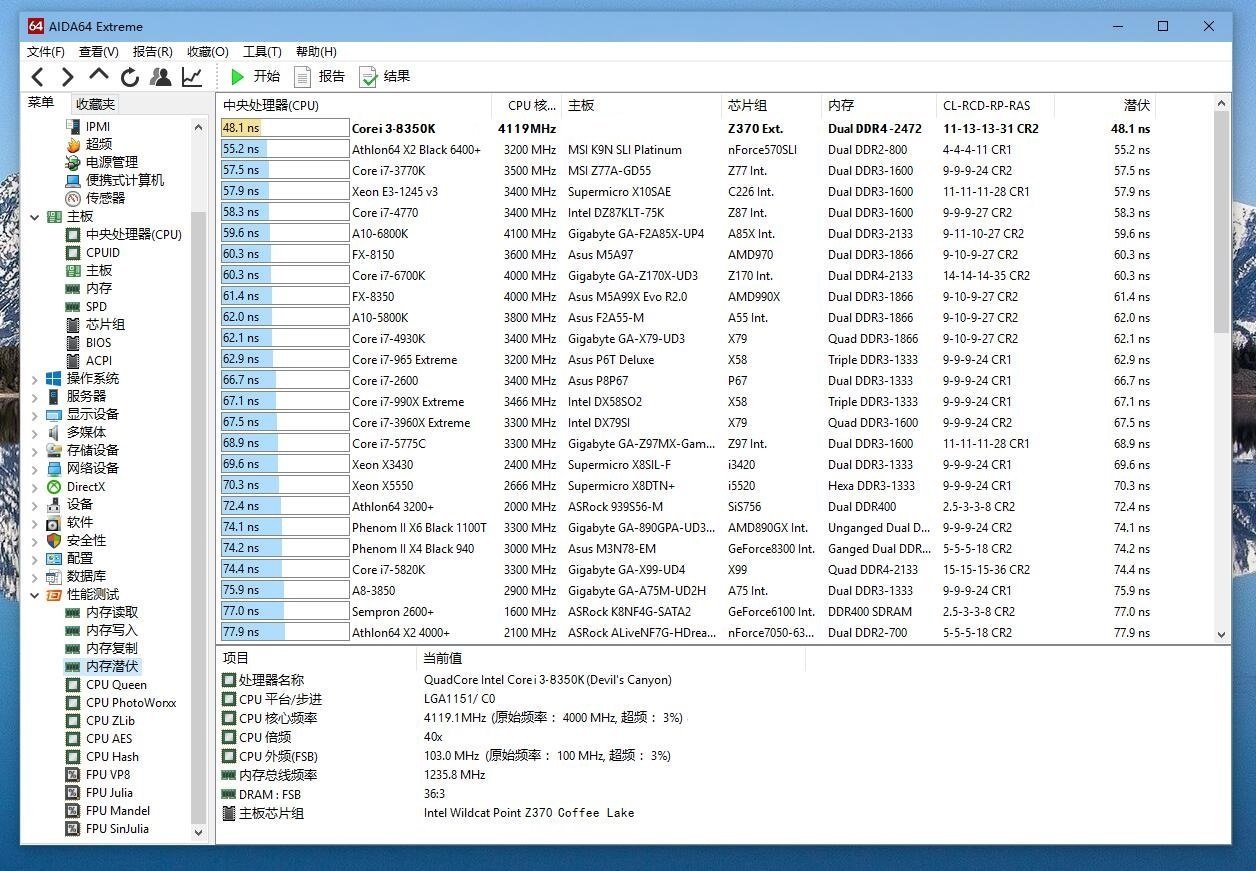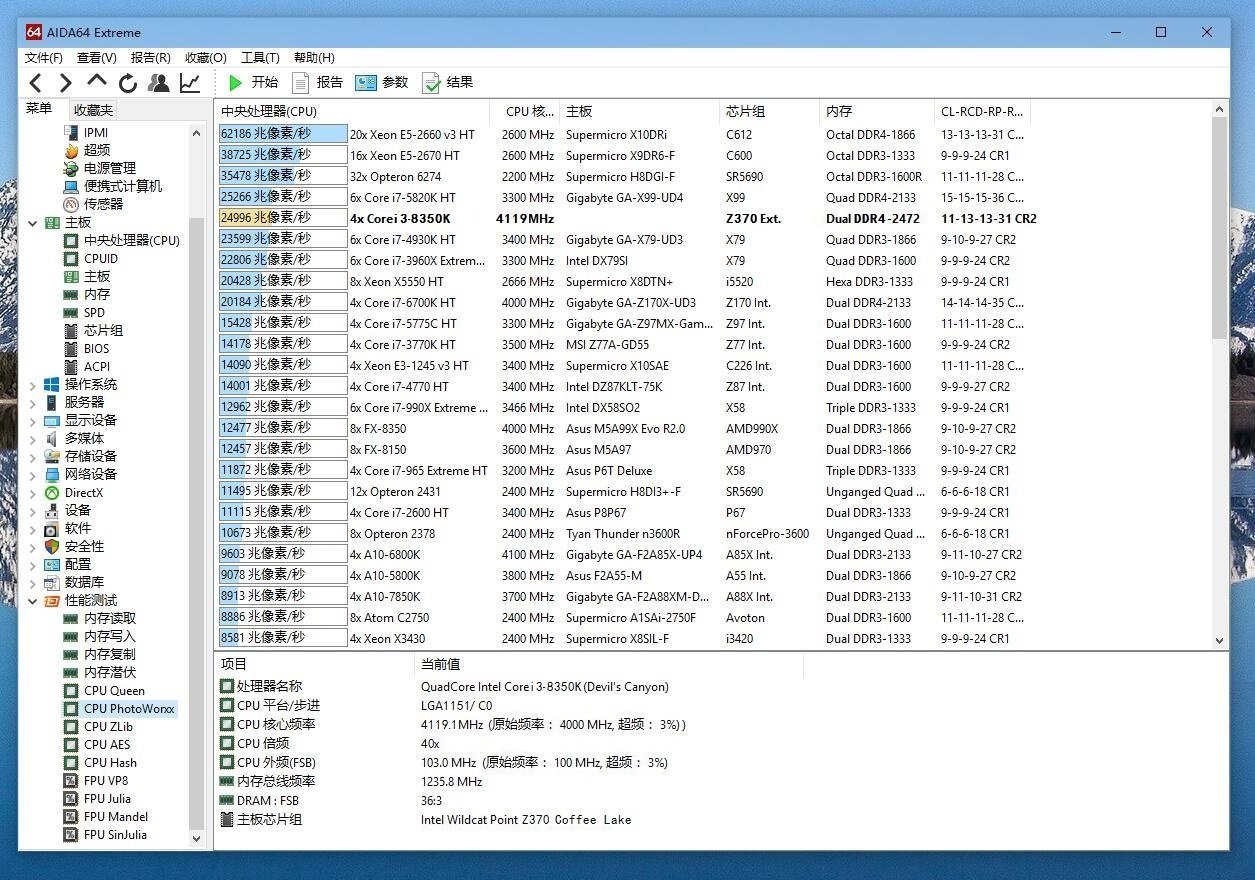 Sekizinci nesil işlemciler, çalışmak için 300 serisi yonga setine sahip bir anakarta ihtiyaç duyuyor. AIDA64’te de henüz bu bilgiler güncellenmemiş. Aşağıda göreceğiniz sonuçlar, Core i3-8350K ve Core i7-6700K işlemcilerinin performans testlerine ait. Bahsettiğimiz gibi gerekli güncelleme olmadığından, programda yer alan bazı etiket bilgilerinde yanlışlıklar söz konusu.