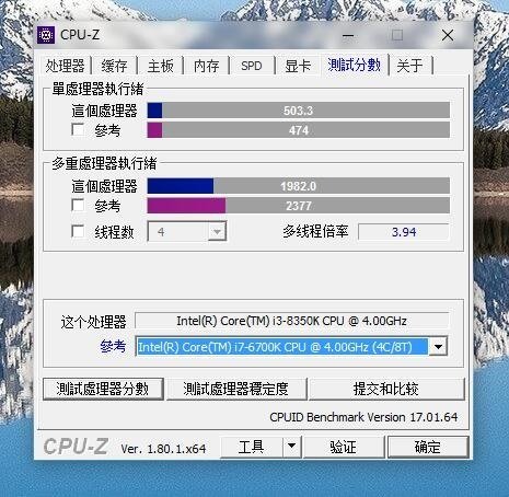 Core i3-8350K, CPU-Z’de tek çekirdek performansında 503.3 puan, çift çekirdek testinde de 1983 puan almış. Yalnızca tek çekirdek performansına bakarsak Core i3-8350K modelinin 492 puana sahip Core i7-7700K işlemcisini geçtiğini söyleyebiliriz. Üstelik Core i3-8350K saat hızı 4.0 GHz olmasına karşın Core i7 7700K modelinde saat hızları temelde 4.2, boost ile 4.5 GHz şeklinde.