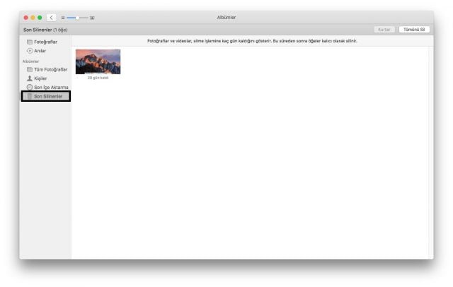 Ancak Fotoğraflar ve Mail gibi uygulamalar kendi çöp kutularına sahip olabilir. Bu tip durumlarda uygulama içinde silinen dosyalar yine uygulama içinde yer alan çöp sepetine taşınacaktır. Bu uygulamaları açıp her bir çöp sepetini temizleyerek diskinizde yer açabilirsiniz.