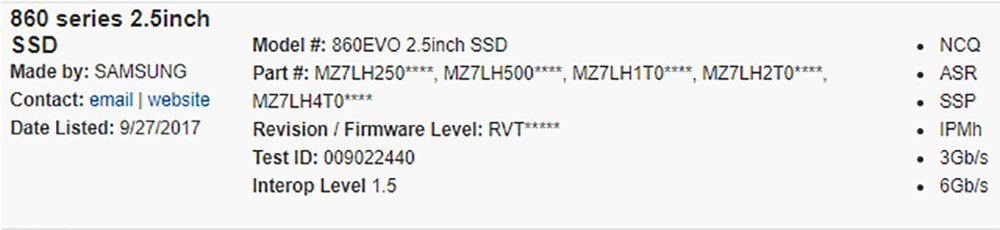 Ancak yakında yeni bir Evo serisiyle karşılaşacağız gibi görünüyor. Samsung tarafından resmi bir duyuru yapılmamış olsa da, yeni 860 Evo serisine dair veriler sızdı. SATA-IO üretici uyumluluk listelerinde görülen 860 Evo serisinde 250 GB, 500 GB, 1 TB, 2 TB ve 4 TB SATA III modellerin olduğu görülüyor.