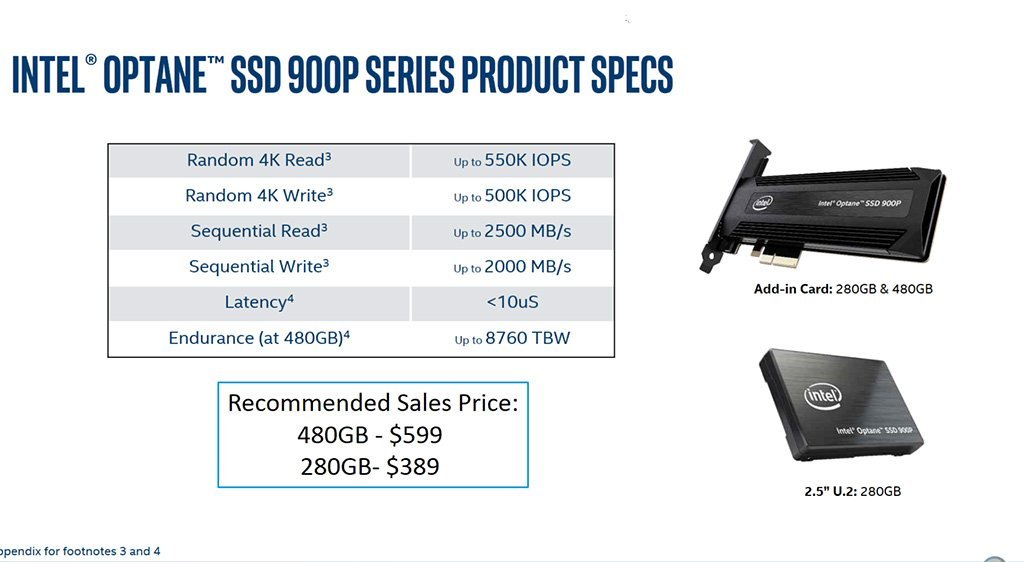 NAND Flash teknolojisinden çok daha hızlı ve uzun ömürlü olduğu ifade edilen yeni Optane sürücüyü 2,5 inçlik SSD formunda ya da PCI-e 3.0 x4 slotu kartı şeklinde satın almak mümkün olacak. Kapasite ise şimdilik 280 ve 480 GB olarak iki seçenekle sınırlı.