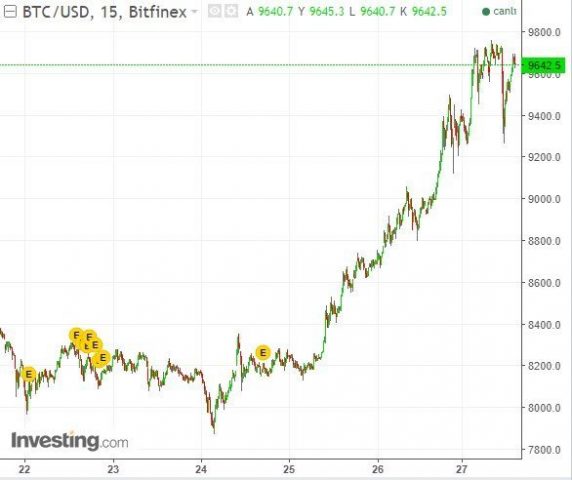 8.000 dolara ulaştığında artık durulacağı öngörülen Bitcoin, kısa bir süre içinde 9.700 dolara ulaşarak tahmincileri yanılttı. Hızlı yükseliş, 2017 yılı sona ermeden 10.000 dolar barajının aşılacağına işaret ediyor.