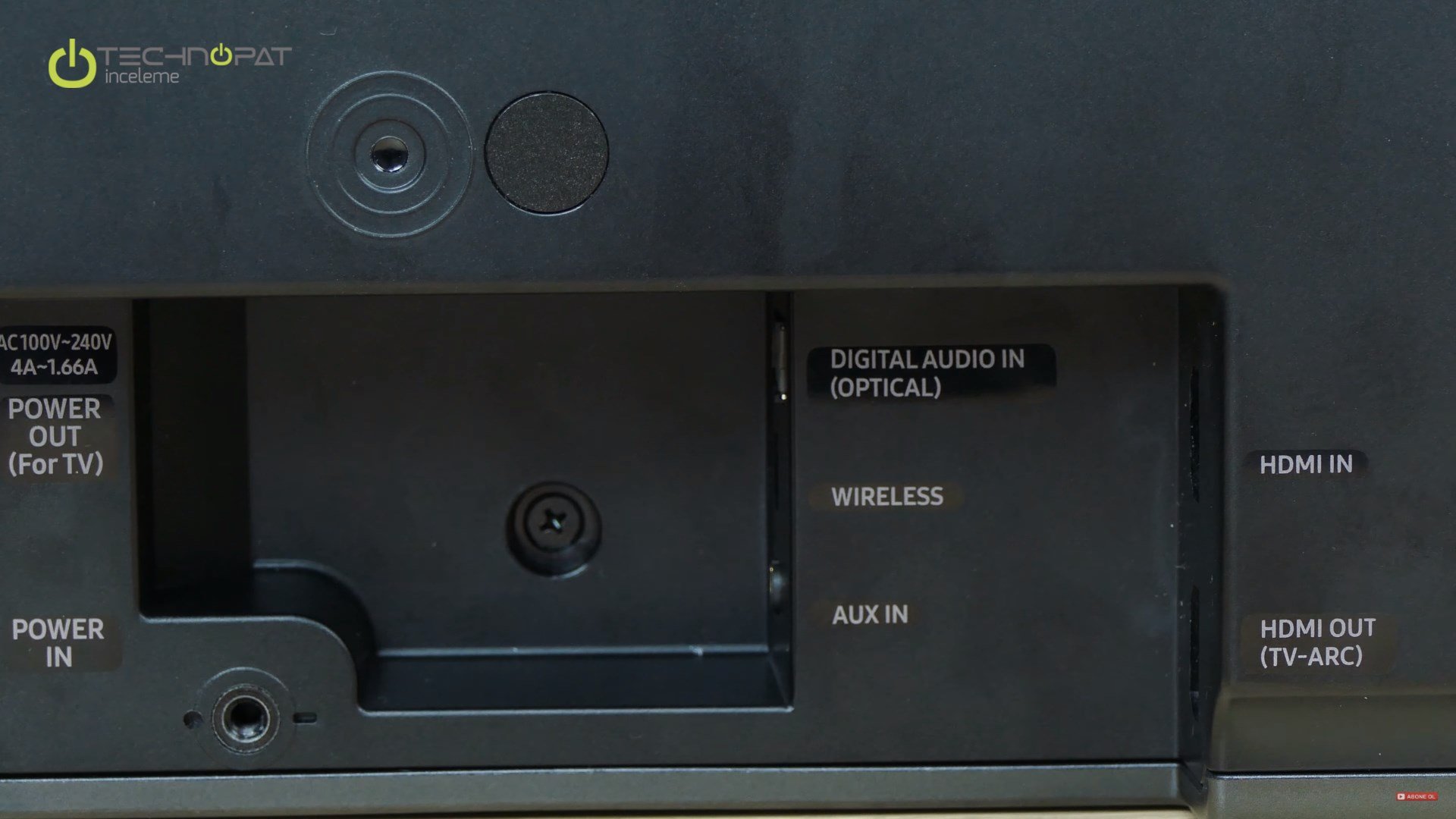 Soundbar’ın tüm bağlantı noktaları arka bölümde bulunuyor. Cihazda ARC destekli HDMI portu yer alıyor. Audio Return Channel yani ARC portu, TV’nizin sesini HDMI kablosu ile Sounbar’a aktarmaya yarıyor. Yine bu port sayesinde TV’nize bağlı Blu-ray oynatıcı, konsol veya uydu alıcı gibi cihazların sesini de doğrudan soundbar’a aktarabiliyorsunuz. Bu özellik için Samsung cihazların da şat olmadığını belirtelim. ARC desteğine sahip tüm marka ve model ürünlerle kullanabiliyor.