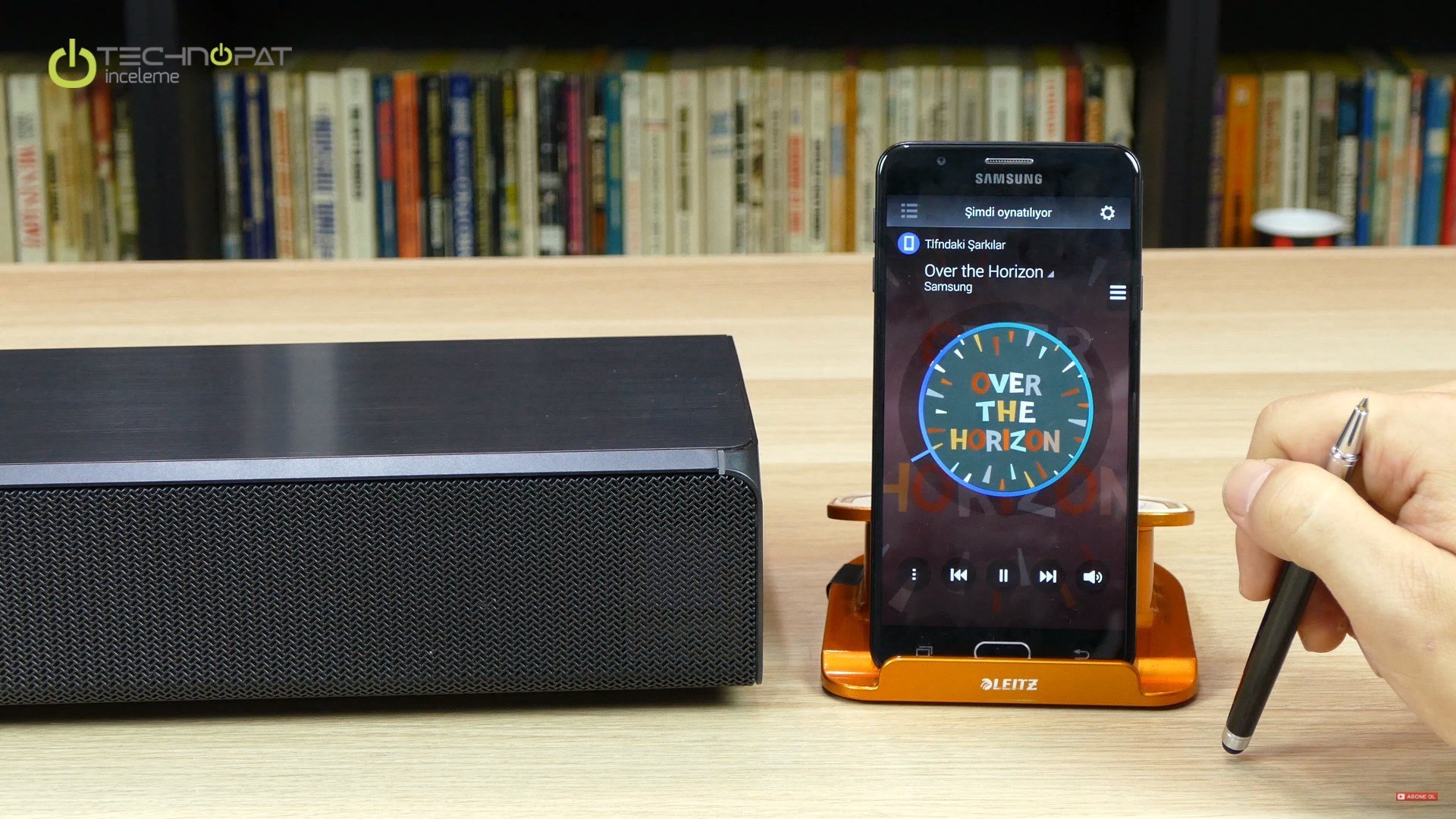 Alttaki Wi-Fi setup tuşlarıyla diğer Samsung kablosuz hoparlörleri de cihaza bağlayabiliyorsunuz. Bu sayede soundbarı subwoofer ile destekleyip, 5.1 yada 7.1 ses sistemine dönüştürmek mümkün. Dahili Wi-Fi ve Multiroom uygulamasını kullanarak NAS aygıtlarından, bilgisayarlardan ve Spotify gibi servislerden müzik çalmak veya sesi evdeki diğer Samsung hoparlörlere göndermek mümkün.