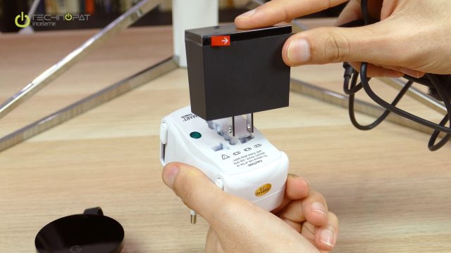 Üzerindeki HDMI portuna ek olarak burada bir adet micro usb giriş görüyoruz, buradan Chromecast’e güç vereceğiz. Kutuda Chromecast’in hemen altında adaptörümüzü görüyoruz. Bizdeki ürün yurt dışından alındığı için dönüştürücü aparatla kullanacağız.