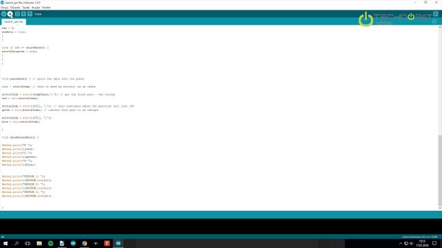 Void Loop fonsiyonuna baktığımızda bluetooth üzerinden bir veri akışı olduğunda kırmızı, mavi, yeşil pinlerini gelen değere göre RGB şeritlere gönderip, hafızayı da ona göre güncelliyoruz.