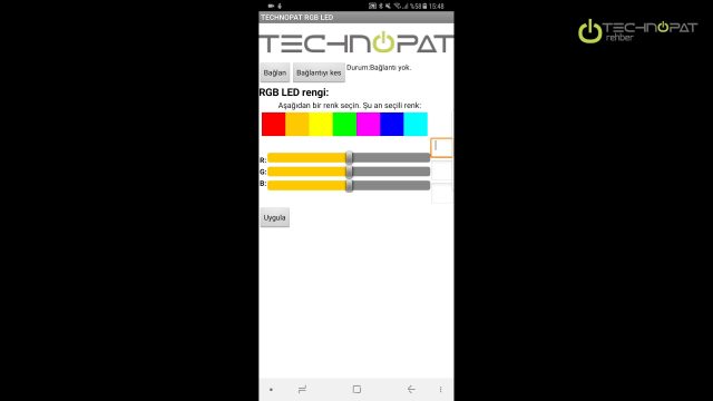 Ve artık Arduino’ya bağlısınız. Dilediğiniz renk değişiklerini yaptıktan sonra Uygula butona bastığınızda RGB şeritleriniz o renkte yanacak ve ayarlarınız Arduno’ya kaydedilecektir.