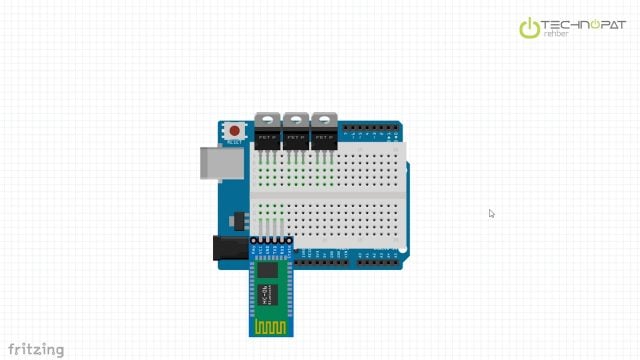 Kod yüklendikten sonra HC-06 bluetooth alıcı&verici’nin TXD pinini Arduino’nun RX pinine, alıcı&vericinin RXD pinini de Arduino’nun TX pinine takıyoruz, yani ters pinlere bağlıyoruz.