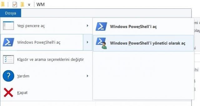 WLAN Manager aracını şu şekilde kullanabilirsiniz. Öncelikle buradan gerekli .zip dosyasını indirin ve arşivin içindeki dosyaları bir klasöre çıkarın. Ardından klasörün sol üst kısmından Dosya>Windows PowerShell’i aç>Windows PowerShell’i yönetici olarak aç yolunu izleyerek PowerShell’i başlatın.