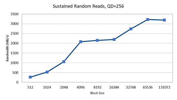 | Farklı Blok Boyutlarında Aralıksız Çok-Kanallı Rastgele Okuma Testleri | ||||||||
