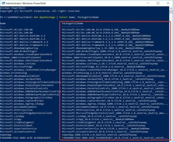 Öncelikle bilgisayarınızda yüklü olan ve Windows ile birlikte gelen uygulamaları aşağıdaki komutun yardımıyla görüntüleyelim.